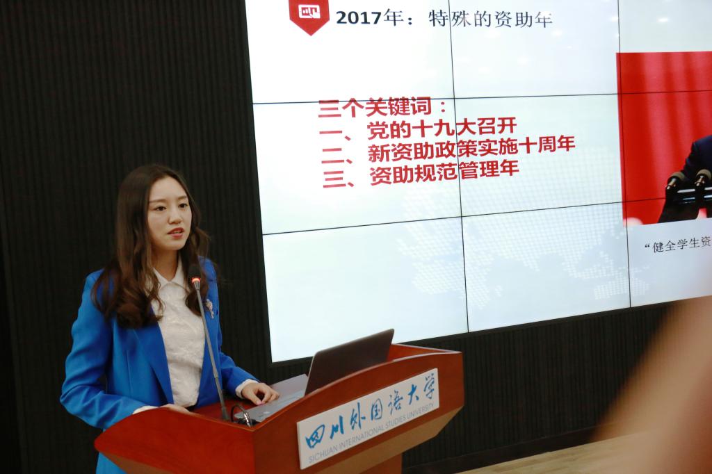 首先,学生工作部(处)资助科向梦回顾了我校自2007年以来的十年资困助学工作,介绍了教育部、重庆市教委对资助规范管理年的工作要求和今年我校资助工作的完成情况,并提出了2018年我校资助工作的思路。