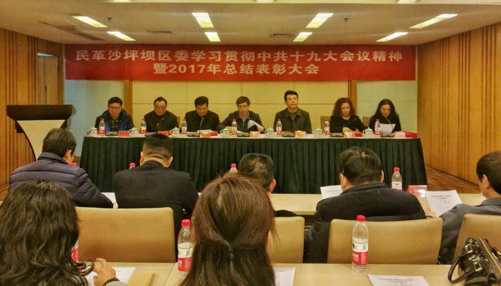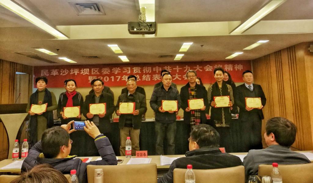 2017年12月29日,“民革沙坪坝区委学习贯彻中共十九大精神暨2017年总结表彰大会”在沙坪坝区民主党派大楼报告厅隆重举行。民革重庆市主委王新强、中共沙区统战部部长付长生、民革区委领导、民革各支部主委、区政协委员、区人大代表、党员代表以及获奖党员参加了大会。