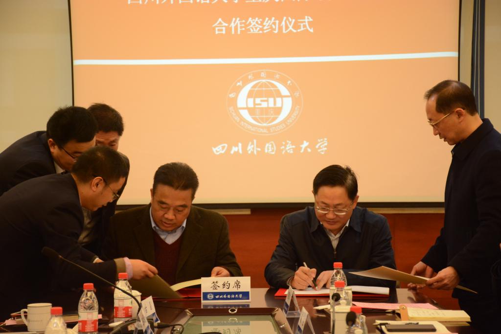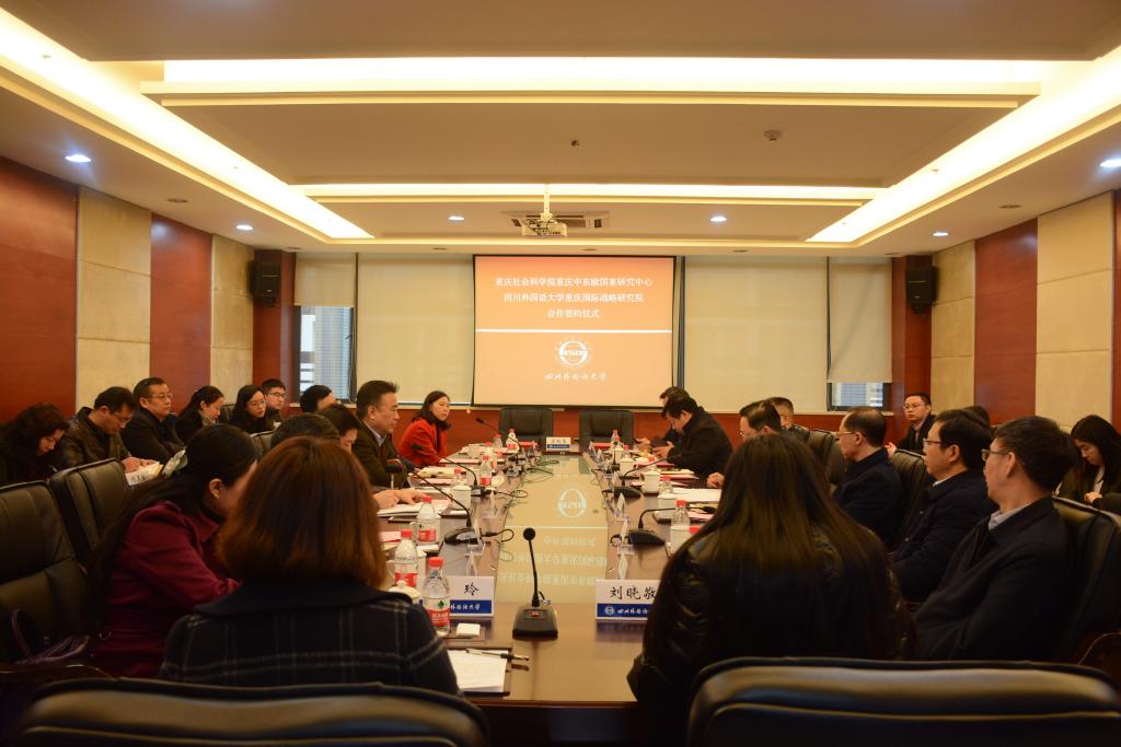 2017年12月15日上午10时,重庆社会科学院重庆中东欧国家研究中心与四川外国语大学重庆国际战略研究院合作签约仪式在我校西校区图书馆505会议室成功举行,重庆社会科学院党组书记、院长陈全,副院长张波,我校党委书记明国辉,副校长董洪川出席会议。签约仪式由我校重庆国际战略研究院秘书长彭江主持。