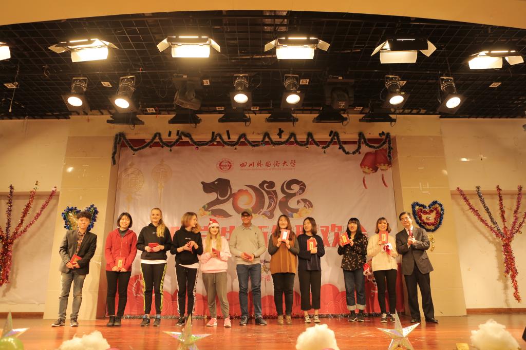 联欢会上,李克勇校长为获奖学生代表颁发了2017年重庆市人民政府外国留学生市长奖学金证书以及四川外国语大学校长奖学金证书。