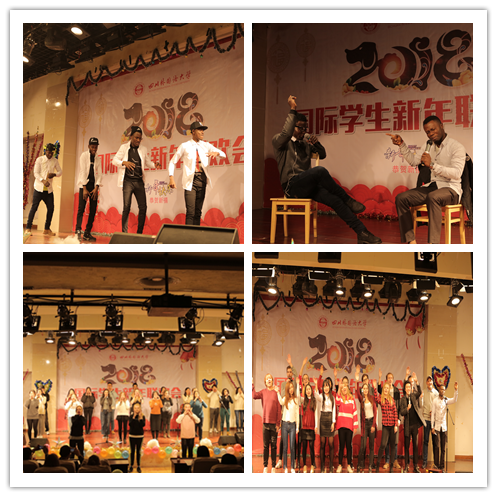 非洲学生一段激情四射的开场舞点燃了现场的气氛。高年级班师生合唱《爱的代价》赢得了现场的阵阵掌声。哑剧《同桌的你》表现出了从学生时代到垂暮之年的相互陪伴。非洲学生带来的相声更是展现出了国际学生的汉语水平。诗歌朗诵《再别康桥》把依依惜别的深情表现得淋漓尽致。泰国学生带来的舞蹈,波兰学生带来的歌曲,摩洛哥学生的吉他弹唱等节目也给观众留下深刻印象。最后,一曲《朋友》为此次联欢会完美收尾。