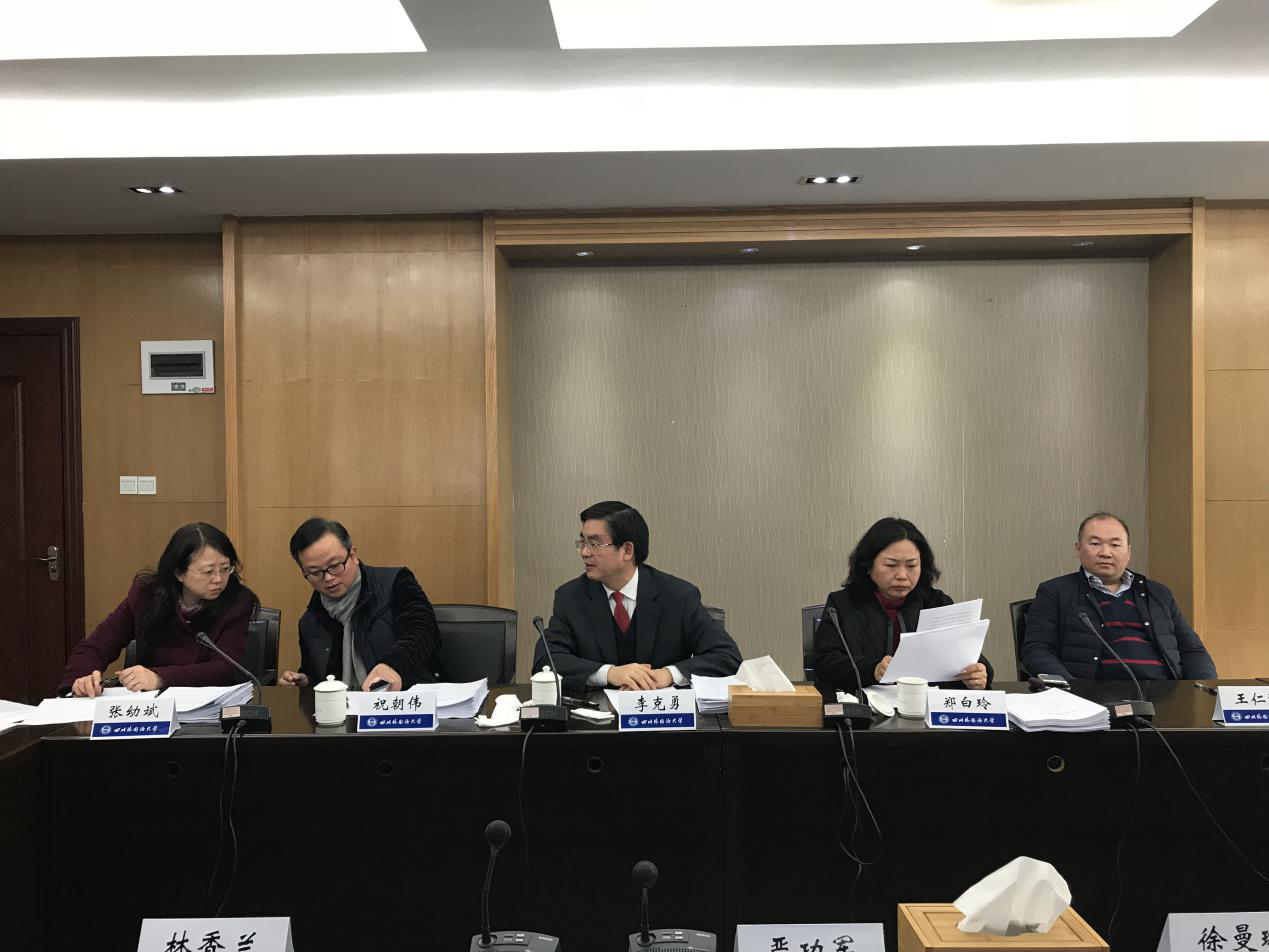 12月19日下午3点,四川外国语大学外籍教师职称评审会在西区行政楼A301召开。评审工作专家组组长李克勇校长主持会议,专家组成员郑白玲副校长、祝朝伟副校长、姚继中教授、徐曼琳教授、李大雪教授、曾传芳教授、林香兰教授、彭程教授、张幼斌教授、严功军教授、王仁强教授、温晓静副教授及人事处处长倪颖军、监察处处长陈新、国际合作与交流处副处长马驭骅出席会议。