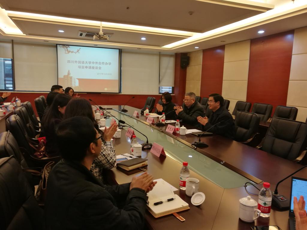 李克勇校长主持工作交流座谈会。李克勇介绍了我校中外合作办学的发展现状及未来规划,希望林金辉教授能够对我校目前的发展思路提出意见和建议,对中外合作办学一线工作人员的一些政策疑问和困惑给予解答。国际处、国际教育学院、德语系、西葡语系等单位负责人相继发言和提问。林金辉对川外在国际化办学过程中取得的成就给予充分肯定,并对学校中外合作办学的发展模式,专业选择和特色发展等方面提出了建设性意见。