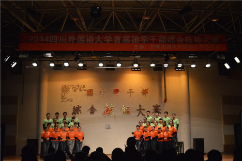 2014年12月4日,四川外国语大学首届团干部综合技能大赛在西区锦绣楼三楼活动中心成功举办。比赛邀请到德语系党总支书记廖峻,校团委副书记陈派,前校团委干部、档案室姚良老师,前新闻传播学院团总支书记、教务处王潇,校大学生艺术团团长曹海燕,校团委书记助理、援外优秀志愿者姚诚,前校大学生艺术团学生团长刘哲宇担任评委。校团委书记丁欢出席观看了比赛。
