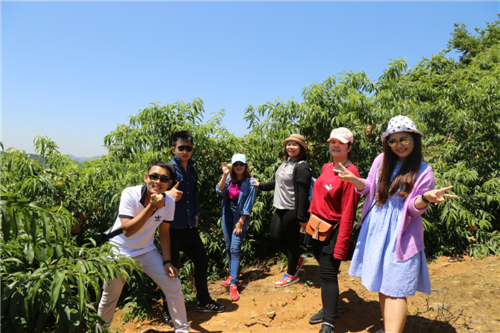 上午,一行人来到渝北区玉峰山葡萄沟现代农业园区。该农业园区是重庆市富有代表性的现代农业示范园。园区内及周边大面积的现代农业种植园为留学生感受重庆市新农村建设提供了样板展示。活动一开始,西南大学园艺园林学院院长尹客林为留学生们讲解了中国新农村建设概况、历程;三农发展新方向;现代农村土地流转;现代农业园区中物联网、水肥一体化检测等现代农业设施设备,并一一回答了留学生们提出的相关问题。随后,留学生们分为两组,分别为葡萄套袋和为水蜜桃拆袋,并品尝了美味的桃子。留学生们在现场讲解示范、亲身体验中,加深了对中国三农发展的印象。