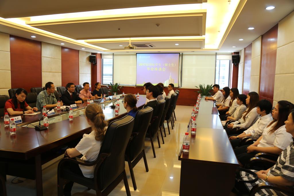 2017年6月28日上午11点,2017届国际学生(硕士生)毕业座谈会在校图书馆会议室举行。