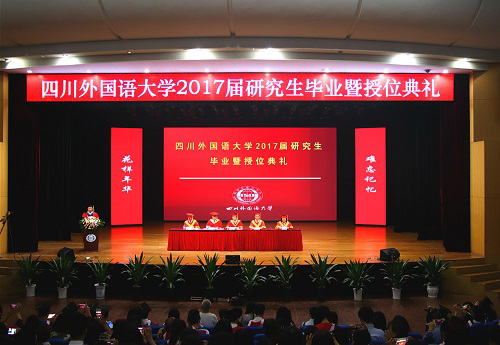 2017年6月23日上午九点,四川外国语大学2017届研究生毕业典礼在东区大礼堂举行,李克勇校长等学校领导、研究生指导教师、各研究生培养单位领导、五百多名2017届研究生毕业生、部分毕业生家长及一百多名低年级研究生出席参加了此次研究生毕业典礼。