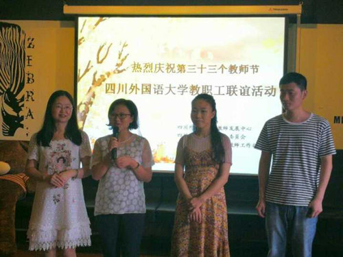 此次活动也是学校为新进老师搭建的一个沟通交流平台,作为学校的新星力量,教师发展中心第二期外语类师资培训班的全体成员以及新加入学校的老师一一亮相并表达了自己能够成为川外教师一员的荣幸。新入我校的大外部捷克语老师李茜说道:“因为我是刚毕业没多久来参加工作,捷克语也是川外今年新开的小语种,这里也是一个陌生的地方,但是这次活动让我感受到了各位领导对我们新进老师的关心,非常非常的温暖”。
